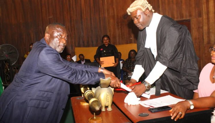 The Executive Chairman of Etinan Local Government Area, Hon Uko Umoh presented the 2025 Appropriation Act to the leader and members of the 8th Legislative Council.