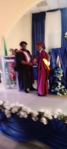 “To my fellow graduands, as we move to the next phase of life, let us not forget the detects and norms which have been instilled in us by our teachers and formators, let us not join the multitude to do the wrong, let us stand out as ambassadors of our alma mata”