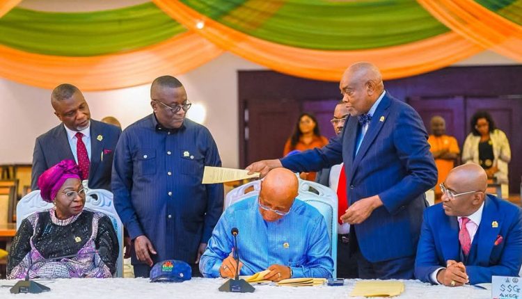 Barely two months to the end of the 2025 fiscal year, Akwa Ibom State Governor, Pastor Umo Eno, has signed into law the ₦695 billion supplementary budget passed by the Akwa Ibom State House of Assembly.