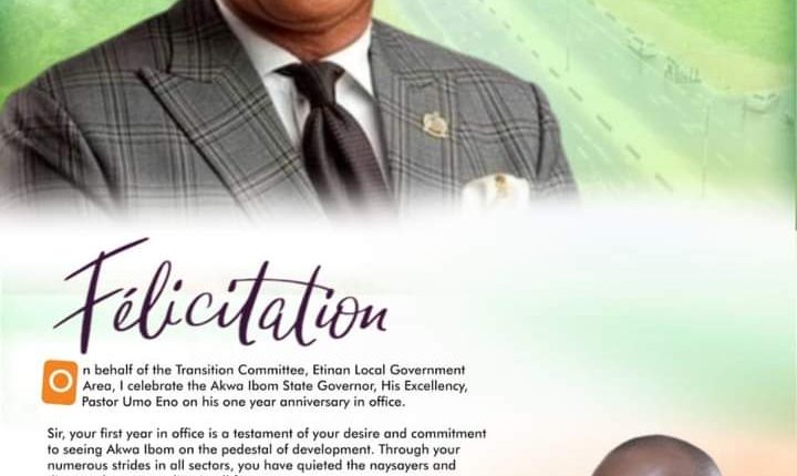 “Sir, your first year in office is a testament of your desire and commitment to seeing Akwa Ibom on the pedestal of development. Through your numerous strides in all sectors, you have quieted the naysayers and disproved propagandists in all fronts” the message reads in part.